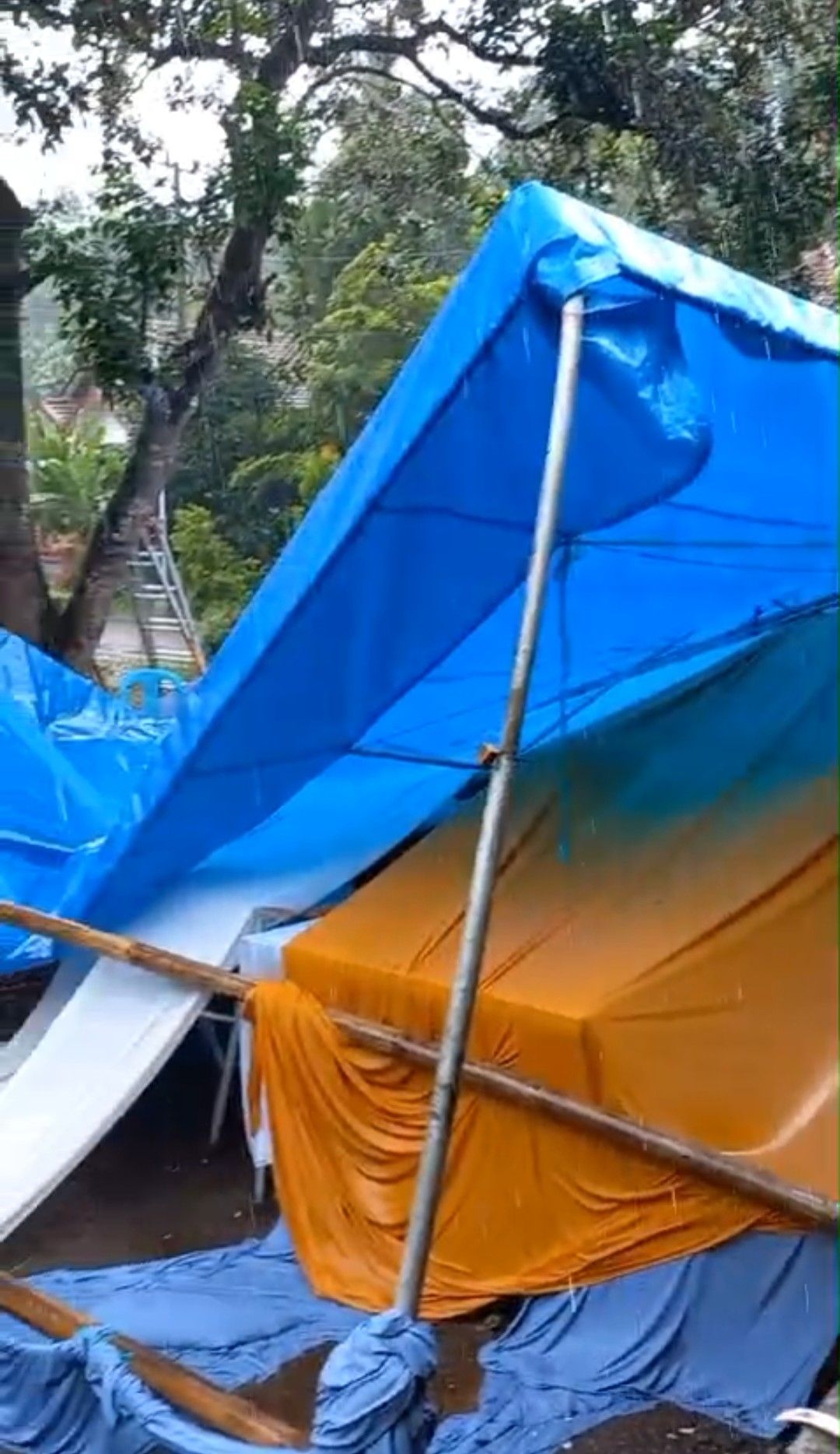 Tenda Tempat Pemungutan Suara (TPS) di Desa Tamansari, Kecamatan Tegalsari, Banyuwangi, Jawa Timur, ambruk akibat hujan dan angin kencang pada saat penghitungan suara sedang berlangsung. Petugas kemudian melanjutkan perhitungan suara ke rumah warga. Dilansir detikJatim, Rabu (14/2/2024), Anggota Komisioner Komisi Pemilihan Umum (KPU) kabupaten Banyuwangi Ari Mustofa membenarkan tentang terjadinya TPS yang ambruk itu.