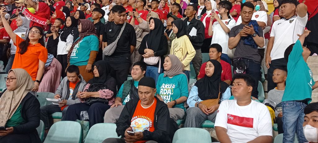 Begitu pula Ibu Nunuy yang membawa Revan, buah hatinya yang menyandang down syndrome. Selama ini mereka hanya nonton bareng (nobar) di luar stadion, namun kali ini Revan bisa duduk aman dan menikmati laga langsung Timnas kesayangannya. Kebahagiaan sederhana ini terasa besar maknanya bagi orang tua dan anak-anak. Ada juga rombongan atlet anak-anak dengan down syndrome dan pelatihnya dari Special Olympics Indonesia (SOIna), yang merasa bangga bisa mendukung Timnas Indonesia langsung dari tribun.