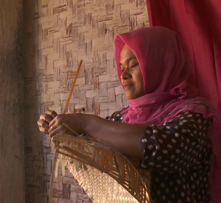 Dia menyelesaikan dua anyaman bambu per hari dengan upah hanya Rp 5.000 serta berjualan aneka kebutuhan di warung sederhana. Penghasilan per harinya tidak tentu, belum lagi kondisi rumahnya yang sudah sangat lapuk dengan dinding bambu bolong.
