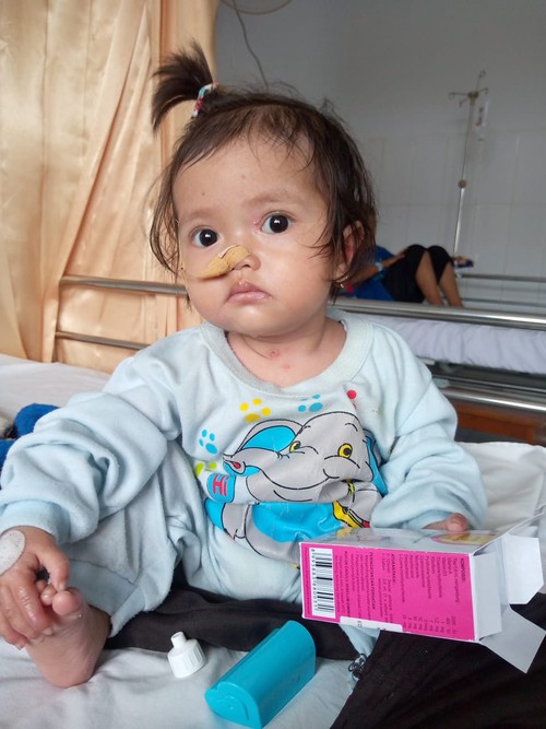“da.. da…da” celetohen bayi Eliza Laila Rahma seakan tengah mengadu bahwa dia sedang kesakitan dan perih. Sang ibu, Halimatun Humaira paham dan mengendong bayi 11 bulan itu dengan hati-hati.