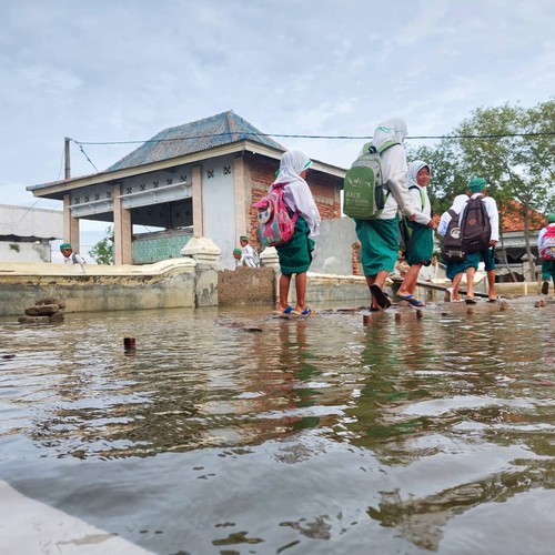 Setiap bulan purnama dan bulan baru, di desa ini selalu tergenang rob yang menyebabkan segala aktivitas tergganggu, salah satunya aktivitas belajar mengajar di MI Man’syaul Huda.