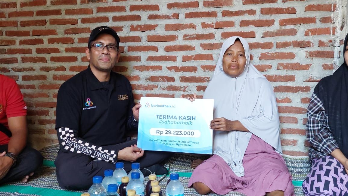 Sebagai informasi bantuan untuk Ibu untung telah dikumpulkan sebanyak Rp 29.223.000 dengan rincian 24.223.000 telah digunakan untuk pembangunan rumah, sisanya sebebsar Rp 5 juta akan Bu Untung gunakan untuk membeli gerobak baru dan juga mesin cuci
