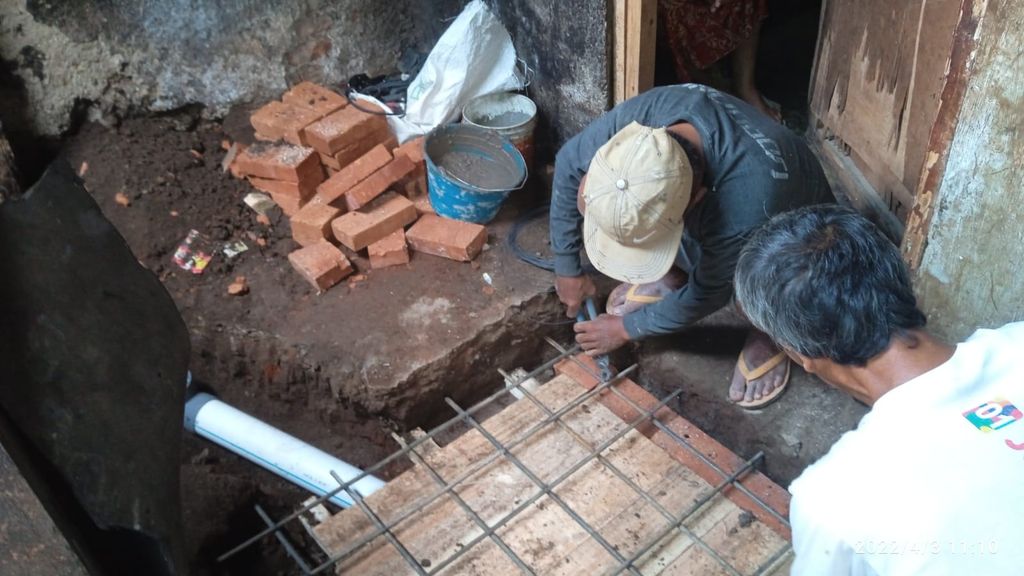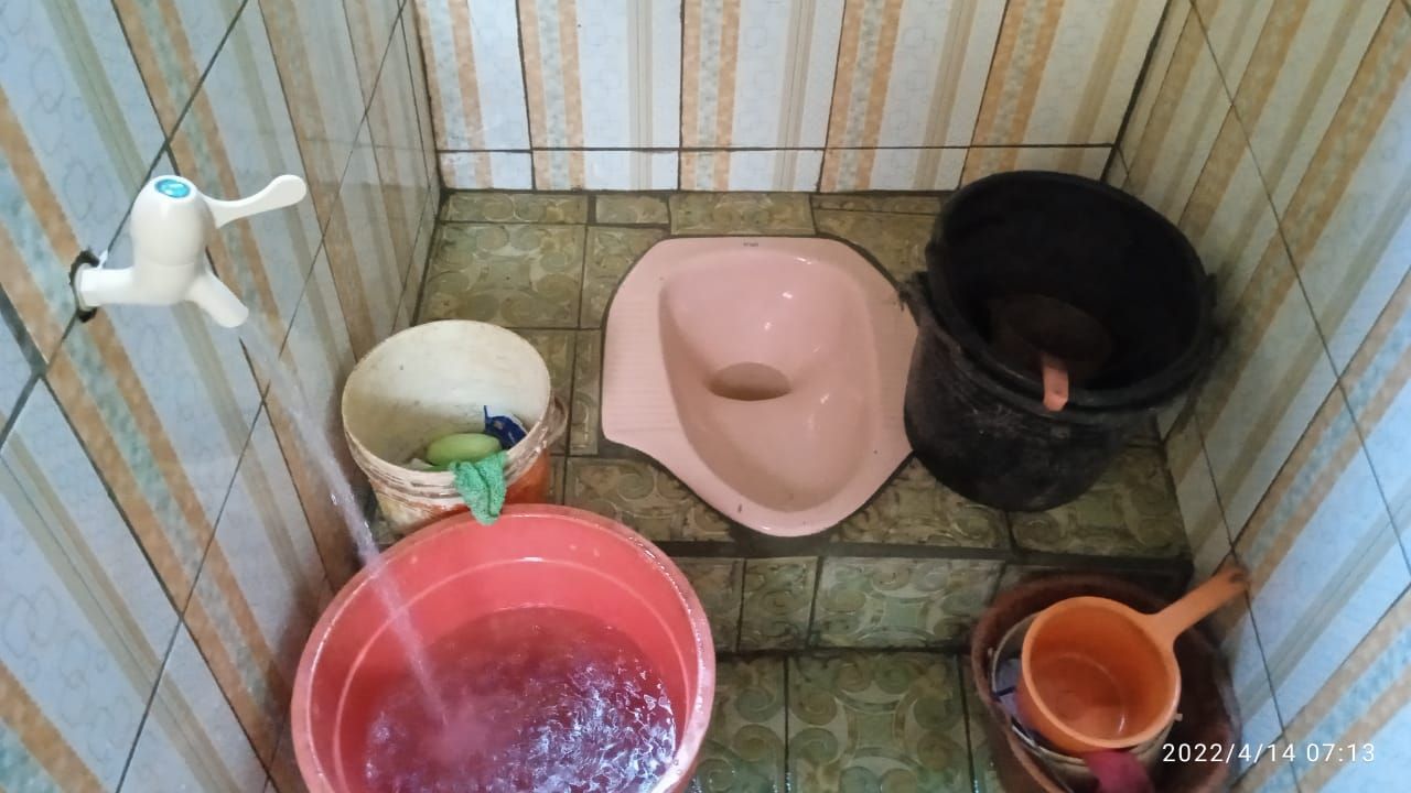 Kamar mandi baru Mak Ikah seluas 1,5x2 m itu sudah rapi dengan paduan keramik berwana hijau dan merah muda serta bercat hijau. Selain itu, beberapa perlengkapan juga sudah tersedia seperti bak, kloset hingga keran.