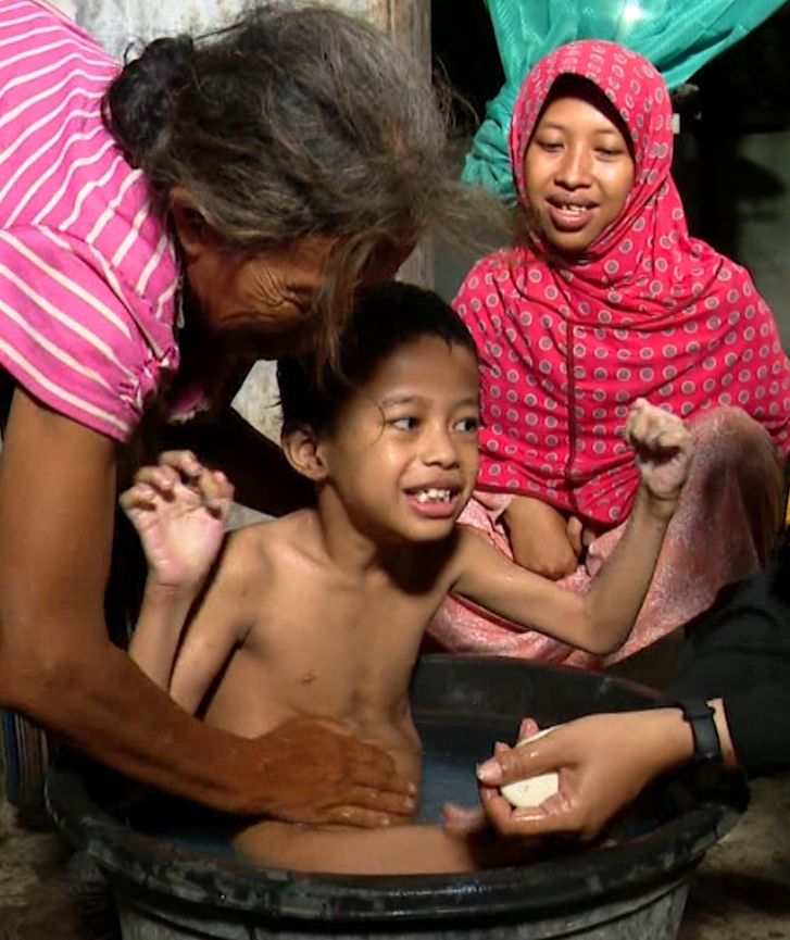 "(Harapannya) Sama seperti teman seusianya, bisa jalan, bisa ngomong, bisa sekolah. Iya cepat bisa jalan Eko, nanti mbah belikan sepeda," ucapnya penuh harap.