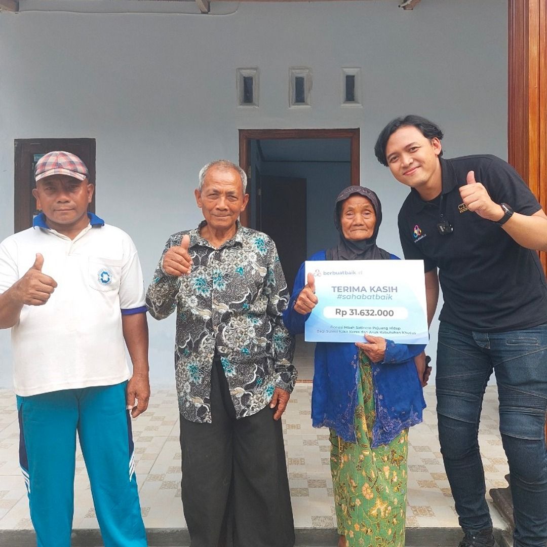 Donasi ini tentu menjadi berkah yang begitu berharga untuk Mbah Satinem dan keluarga. Sahabat Baik pun bisa terus menebar kebaikan dengan membantu pejuang keluarga lainnya, seperti Mbah Satinem. Ayo segera berdonasi melalui berbuatbaik.id sekarang juga.
