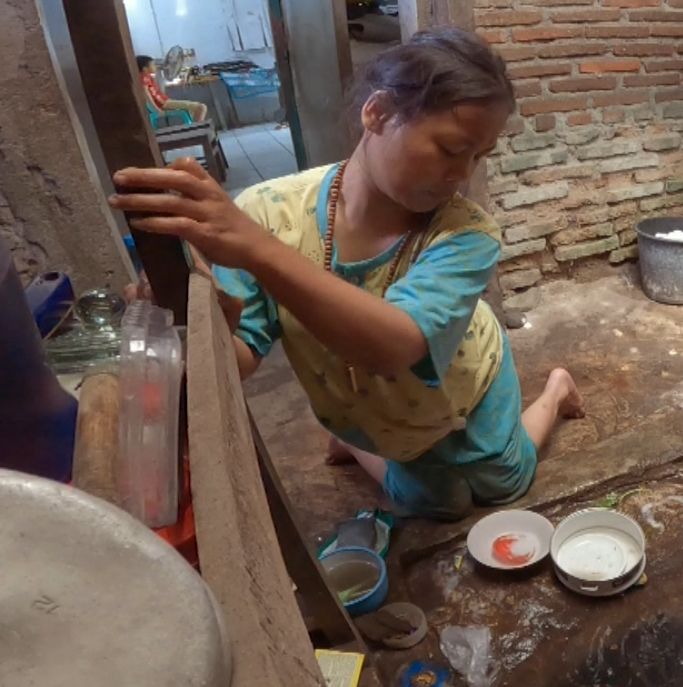 Rina memutuskan untuk terus tegar dan berjuang menjadi tulang punggung keluarga dengan berdagang karpet dan gorengan. Walaupun, untuk berjalan saja, dia harus dibantu walker dan kursi roda yang sudah tak layak lagi.