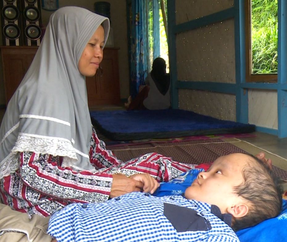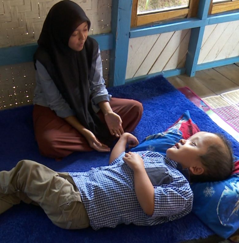 Lamat-lamat lantunan salawat nabi terdengar dari rumah berbilik bambu di Kampung Cikoleang, Kecamatan Kadupandak, Kabupaten Cianjur, Jabar. Rupanya pemilik syahdu itu tak lain adalah Denda Setiawan (9) dan ibunya, Rani (39). Namun tidak seperti anak biasanya, Denda hanya tiduran karena kepalanya membengkak sebab penyakit hidrosefalus.