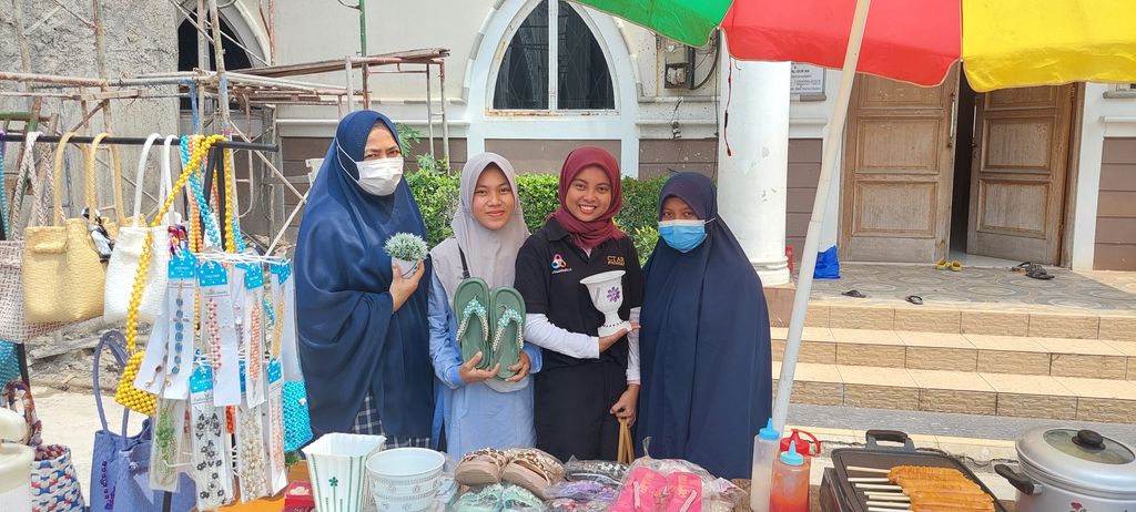Salah satunya Retno (22) yang ikut pelatihan dan berjualan berbagi kreasi tempat tissue, sendal, connector masker hingga tas anyaman. Ibu beranak satu ini mengaku sangat terbantu dengan adanya binaan ini sehingga dirinya bisa membantu ekonomi keluarga.