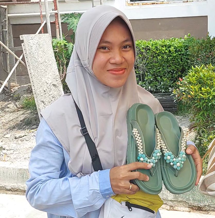 "Awalnya bunda dari Anissa ke sini kita diajarin semua, trus ada mau ikutan gak bikin buat mengembangkan karya yaudah kita ikutan. Alhamdulillah jadi pendapatan dari sini. Alhamdulillah satu pasang sendal dapat Rp 30 ribu, bisa dapat Rp 50 ribu, bisa dapat Rp 100 ribu juga," tutur dia yang bersuamikan buruh bangunan.