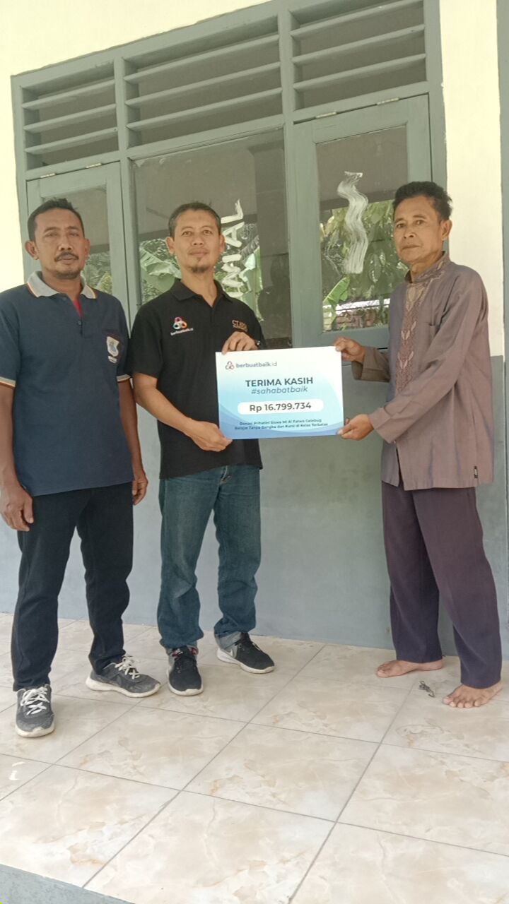 "Sudah diterima dan Alhamdulillah untuk keperluan sekolah dan lain-lain, bangku, keperluan kamar mandi, sapu, whiteboard. Sebelumnya boro-boro sebelumnya anak-anak terbaring (belajar) bawa tikar datang ke sini," jelas Abu Bakar selaku Kepala Sekolah MI Al Fatwa Gelebug kepada berbuatbaik.id.
