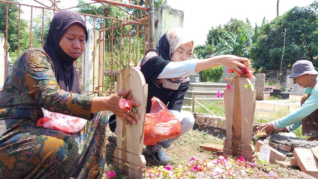 Air mata Turinih terus menerus menetes tak tertahankan, mengingat Lissa, anak semata wayang yang meninggal beberapa waktu lalu. Di pusara sang anak bersama suaminya, Turinih merapalkan doa-doa penyejuk hati yang diharapkan sampai juga ke Lissa. Turinih bersama berbuatbaik.id juga menabur bunga dan menyiramkan air mawar di makam Lissa yang belum kering seraya berharap dilapangkan kuburnya.