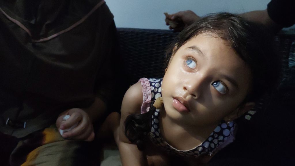 "Kami sudah 7 bulan di sini. Dari lahir matanya putih. Zahida ini hanya bisa melihat cahaya lampu. Kedua matanya korneanya dilihat kondisi mata itu 40 hari setelah dilahirkan ternyata hanya melihat cahaya lampu saja. Setelah itu umur 2 bulan, dibawa ke RS khusus mata, ada dua kemungkinan antara virus rubella dengan obat-obatan. Kata dokternya korneanya rusak karena pengaruhnya itu obat-obatan dan virus Rubella. Sudah operasi ke dua kalinya, satu-satu mata, cuma perubahannya itu ada dua kemungkinan antara gagal dan keajaiban untuk berhasil karena sangat sedikit keberhasilan apalagi kornea mata," ungkap sang ibu, Harmawati kepada tim berbuatbaik.id.