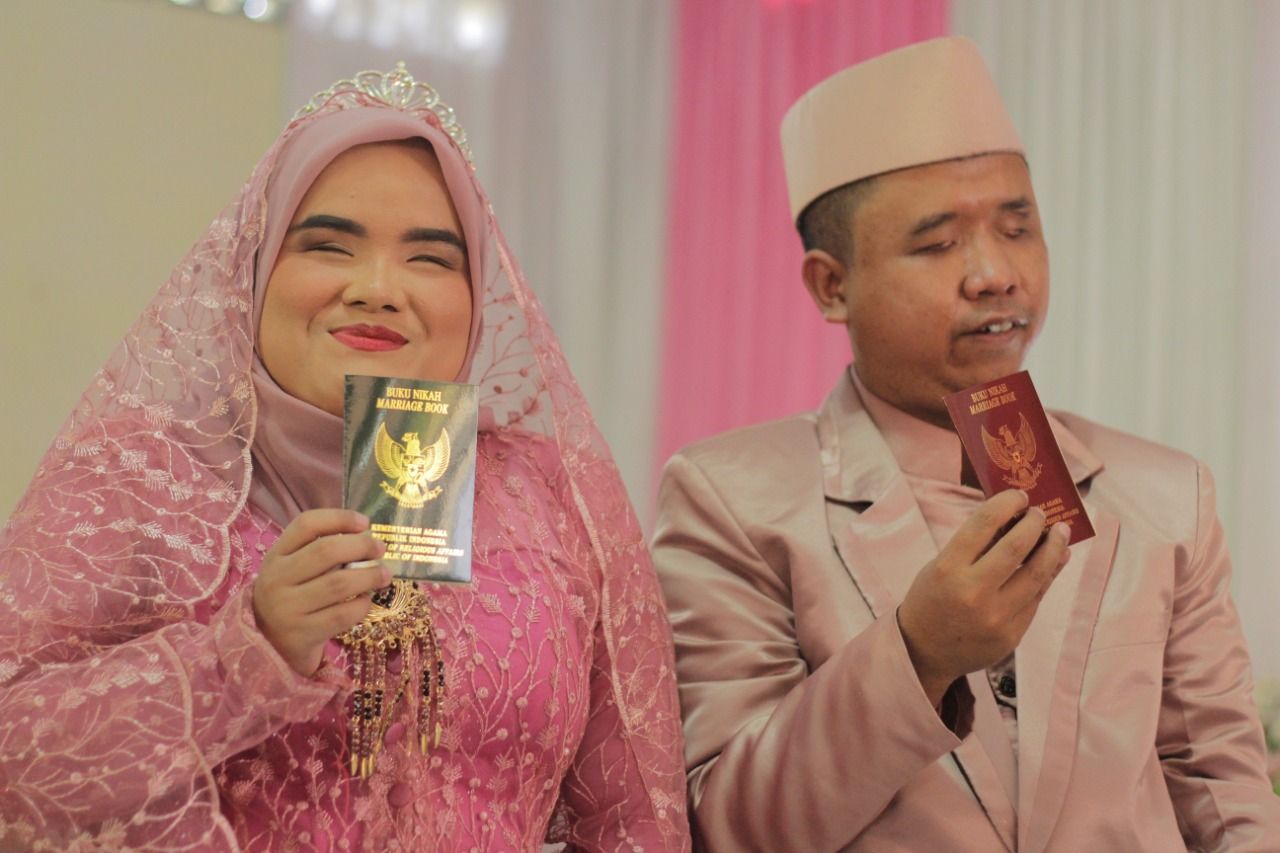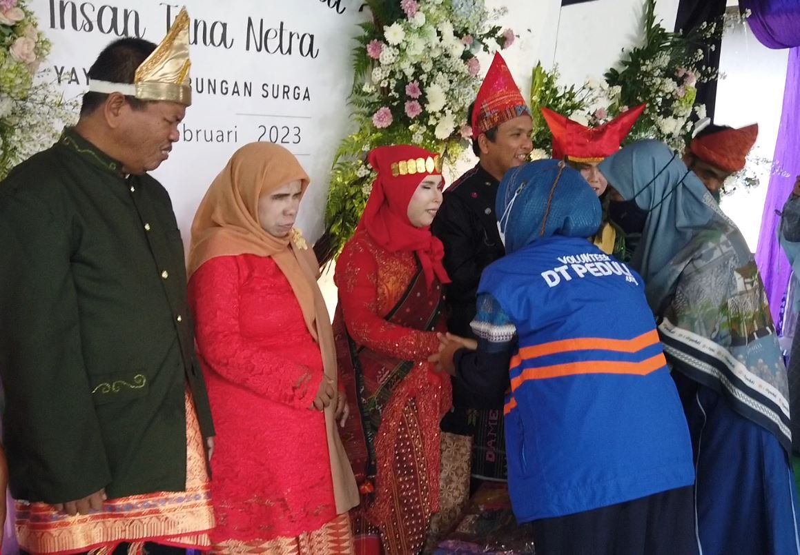 Tepat pada pukul 09.00 WIB, pernikahan tuna netra yang digagas Yayasan Tabungan Surga sukses digelar. Sebanyak 15 pasangan tuna netra dari kalangan tak mampu berbahagia karena ikatan cinta mereka telah sah secara hukum dan agama.