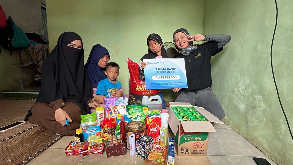 Dalam kesempatan itu, Kartini yang juga didampingi oleh relawan berbuatbaik.id membeli kebutuhan pokok untuk dia dan anak-anak, seperti beras, minyak, sabun, dan lain-lain.