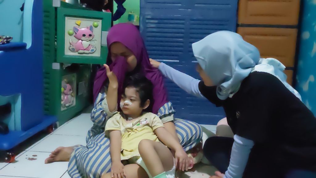 "Keluhannya itu, gak tau kok makin ke sini, makin sering dirawat, saya bingung. Ini anak kenapa sih kok tiap bulan dirawat mulu. Saya kadang stres sendiri. Saya gak nyangka, saya sempat bengong ini anak kenapa, ga bisa ngapa-ngapain. Kata dokter ini mah anak CP (cerebral palsy). Saya kaget nyari di google, saya gak percaya anak kayak gini, ya Allah. Saya berputus asa, nangis, saya gak mau makan," ucap dia mengenang.