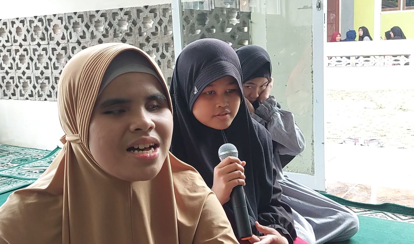 "Sering dihina dan dicaci maki untuk mencoba bangkit mengingat Allah aja. Misalnya lagi sedih baca Alquran nanti Insyallah bisa menjalani aktivitas lagi," pungkas gadis yang jago membaca puisi ini.