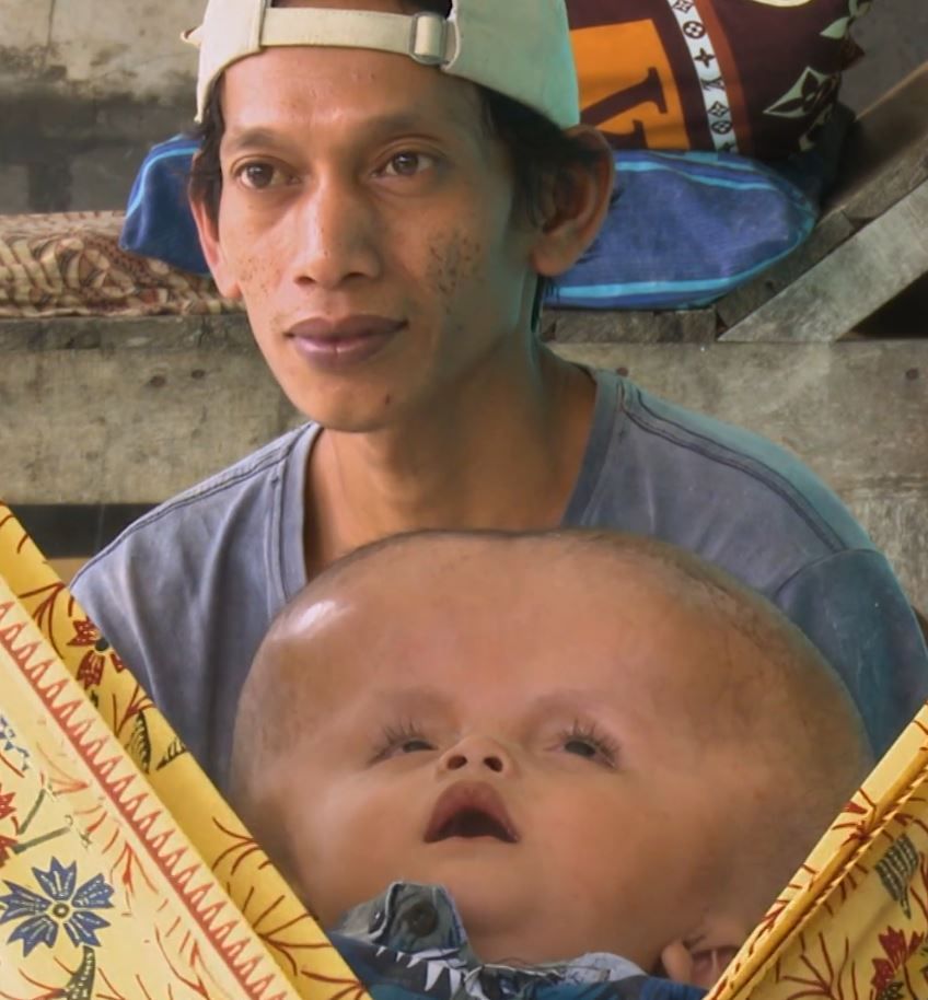 Tidak seperti anak-anak di usianya, Muhammad Azril (3) hanya bisa terbaring tak berdaya di rumahnya Cariu, Bogor, Jawa Barat. Bukan tanpa sebab, hidrosefalus lah yang membuat Azril sulit bergerak bahkan untuk mengangkat kepala karena cairan serebrospinal di rongga otaknya sudah bertumpuk hingga membuat kepalanya membesar. Hanya sang ibu lah, Lena Laelasari (32), yang setia mendampingi Azril yang kerap dibaringkan dalam ayunan kain.