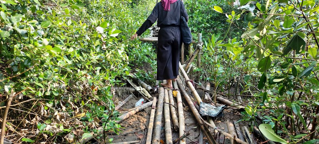 "Karena abrasi jadinya jembatannya semakin habis. Dulu kan pantainya ada jembatannya. Jadi memang di sini warga cuma ngandelin jembatan ini ya sama perahu," jelas Ketua RT 05, Agus Gunawan kepada tim berbuatbaik.id