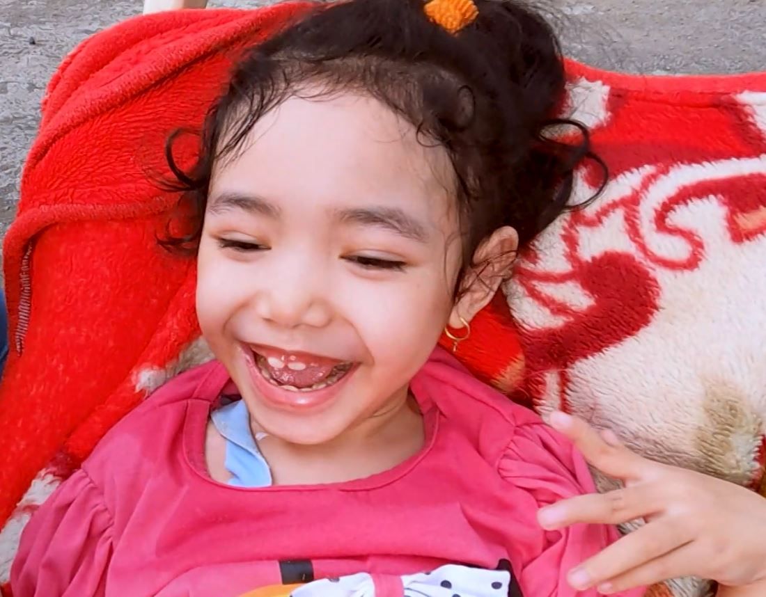 Wajah ceria penuh senyum tak henti ditunjukkan Surotun Nazila Salsabila (8) padahal dirinya tak lagi bersama orangtua dan alami keterlambatan pertumbuhan. Entah dari mana semangatnya ini meskipun sudah sejak 1 tahun dia tidak bisa berjalan dan berbicara.