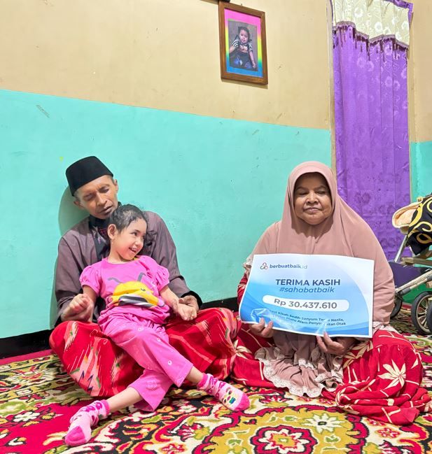 Donasi yang terkumpul sebanyak Rp 30.437.610 telah membantu meringankan beban keluarga Nazila. Selain digunakan untuk membeli untuk membeli popok sekali pakai dan memenuhi kebutuhan sehari-hari lainnya, keluarganya juga berencana untuk merenovasi rumah agar Nazila memiliki tempat tinggal yang lebih layak dan sisa dana yang dimiliki nantinya sebagai tabungan untuk kebutuhan mendadak.