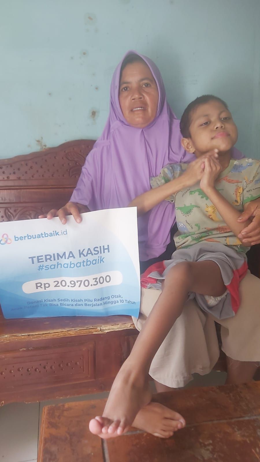 “Ya gitu lah, cari duit ke mana-mana, dikasih RT juga tapi kan saya tetep enggak cukup uangnya. Buat ke sana dua kali sehari enggak cukup. Saya berhenti, buat beli susu saja,” ucap Narwen lagi. Di rumah, Ibnu juga tidak bisa ditinggal seorang diri karena ia sering kali membenturkan kepalanya ke tembok. Hal ini juga yang menyebabkan Narwen kebingungan untuk mencari penghasilan tambahan lainnya. Meski begitu, Narwen dan Natam tak pernah sedikit pun putus asa untuk merawat buah hati kesayangannya. Mereka tak henti-hentinya bekerja dan berdoa untuk Ibnu. Dengan penuh rasa ikhlas dan pasrah, mereka juga sangat berharap bahwa akan ada mukjizat yang diberikan oleh Yang Maha Kuasa untuk kesembuhan Ibnu. “Aku inginnya anak ini bisa jalan sendiri, ngomong sendiri gitu. Saya inginnya gitu, cuma anaknya sudah enggak bisa,” ucap Narwen. Sahabat Baik, kisah Ibnu hanyalah sepenggal kisah pilu dari banyak kisah anak-anak lain di luar sana yang mengalami hal serupa. Mari kita bersama-sama bantu ringankan beban Natam dan Narwen serta untuk pengobatan Ibnu. Kamu bisa membantu mereka dengan berdonasi di berbuatbaik.id. Donasi yang kamu berikan akan tersalurkan 100% ke penerima tanpa potongan. Yuk, mari kita lakukan kebaikan dari sekarang juga! Bersama-sama, kita lebih mudah. |