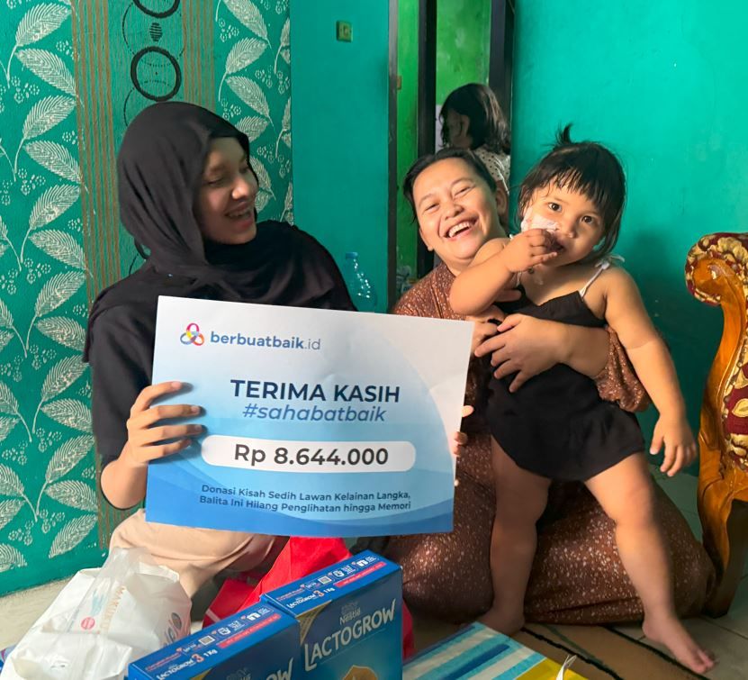 Berkat Donasi yang terkumpul sebanyak Rp 8.644.000 telah membantu memenuhi kebutuhan, peralatan, dan obat Reina sehari-harinya seperti popok sekali pakai, susu, feeding tube, jarum suntik, strip cek gula darah, dan lainnya.