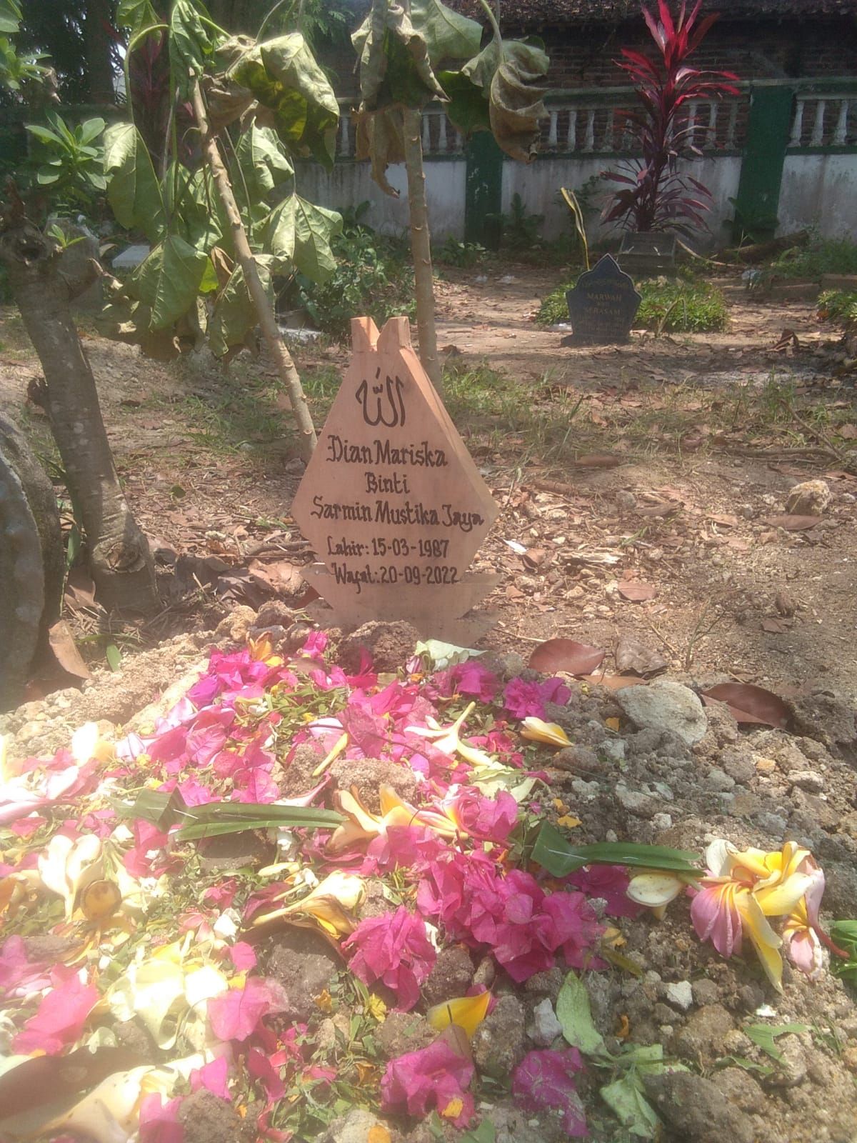 Setelah berbincang dengan keluarga almarhumah, tim bersama keluarga Dian Mariska pun berziarah ke makam Tumenggung, Kampung Jombang Wetan, Cilegon. Di makam almarhumah Dian Mariska, kami menaburkan bunga mawar dan krisan serta berdoa untuk Dian agar diberi kelapangan di alam kubur.