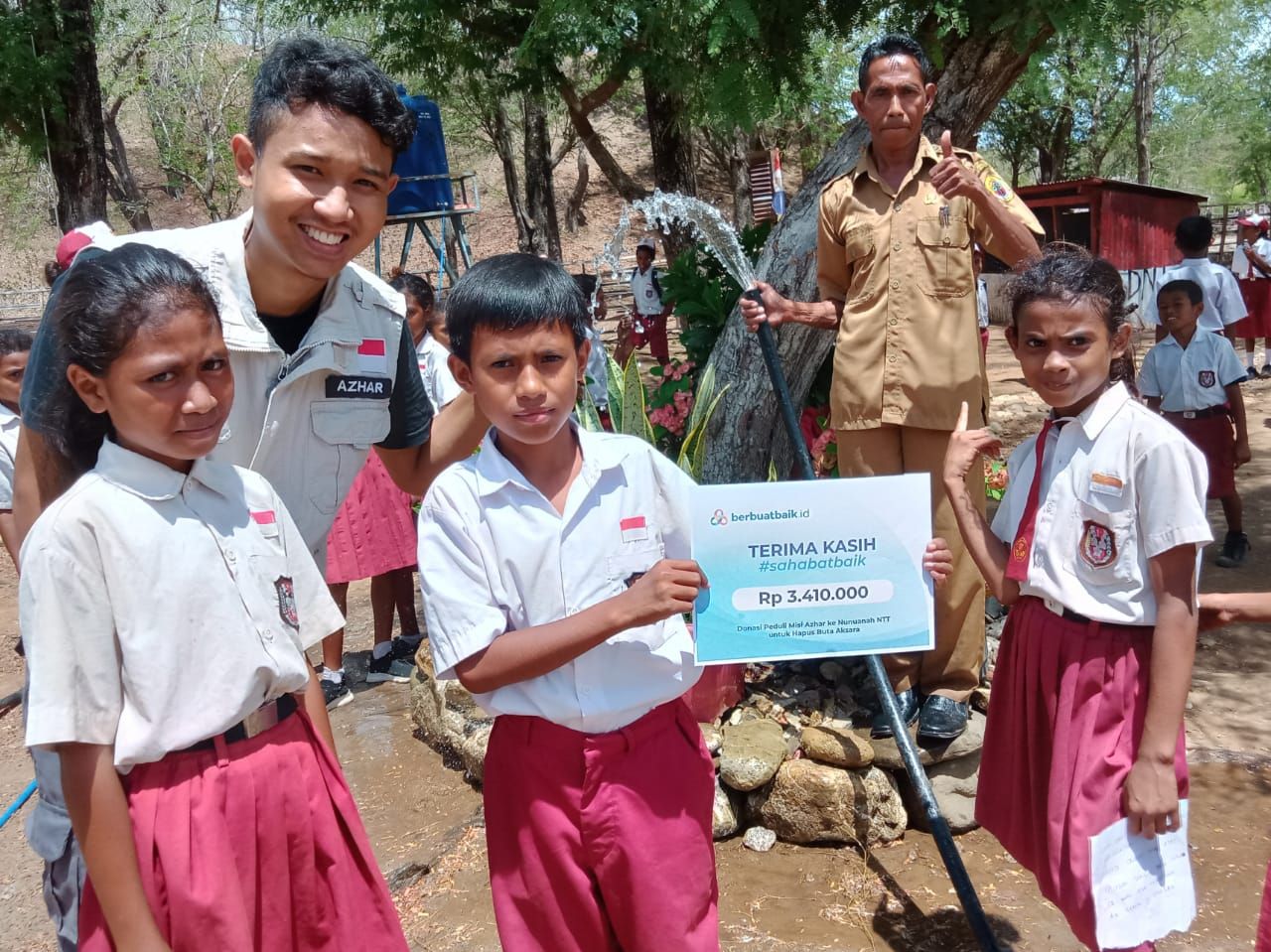 Sahabat Baik, kegembiraan anak-anak Leomanu tentu menjadi kebahagiaan bagi kita semua. Sebagai informasi, donasi yang telah tersalurkan ke SDN 02 Leomanu, NTT melalui Azhar mencapai Rp 3.410.000 yang dipergunakan untuk membeli selang, semen, pemurni air.