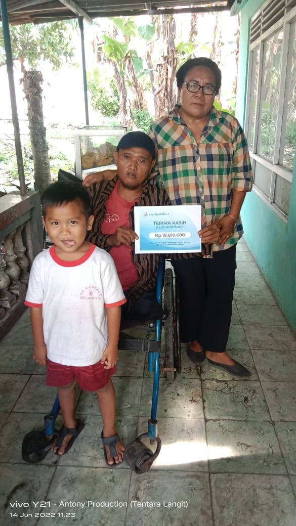 "Terima kasih sahabat baik yang telah mewujudkan mimpi dan harapan saya mempunyai armada dan sarana untuk berjualan kembali menggantikan apa yang saya sudah punya yang sudah usang dan tidak layak dan nyaman lagi untuk beraktivitas dan berdagang lagi. Semoga yang saya terima dapat menjadi berkah dan manfaat," sebutnya kepada tim berbuatbaik.id