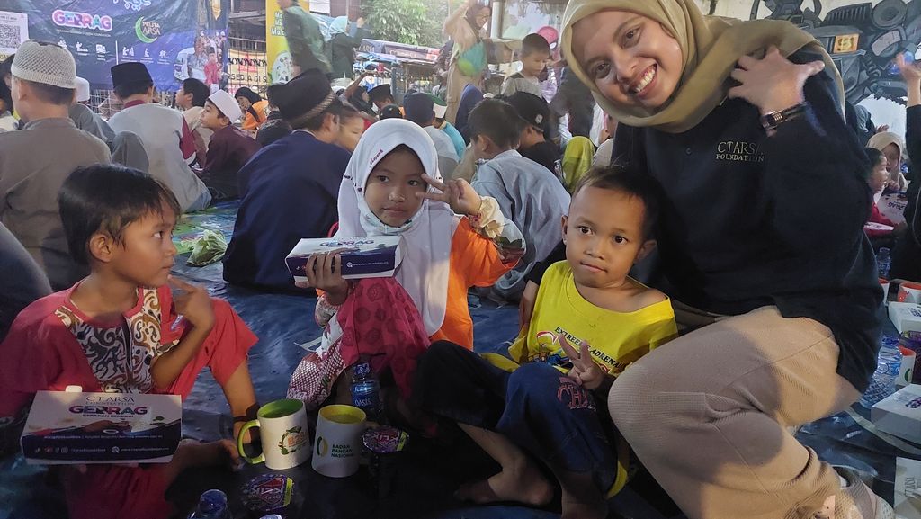 Kehadiran mereka tidak hanya sebagai bentuk dukungan, tetapi juga ikut serta dalam persiapan penyediaan santapan berbuka bagi anak-anak dan warga sekitar.